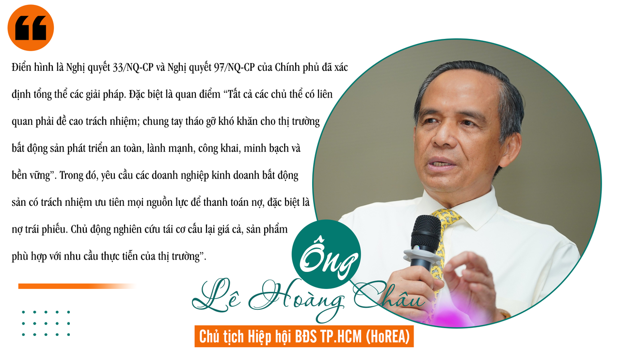 Ông Lê Hoàng Châu - Chủ tịch Hiệp hội Bất động sản TPHCM (HoREA) cho biết, Chính phủ đã có nhiều cuộc tiếp xúc các doanh nghiệp đang gặp vướng mắc, để cùng chung tay tháo gỡ khó khăn cho thị trường bất động sản phát triển bền vững.