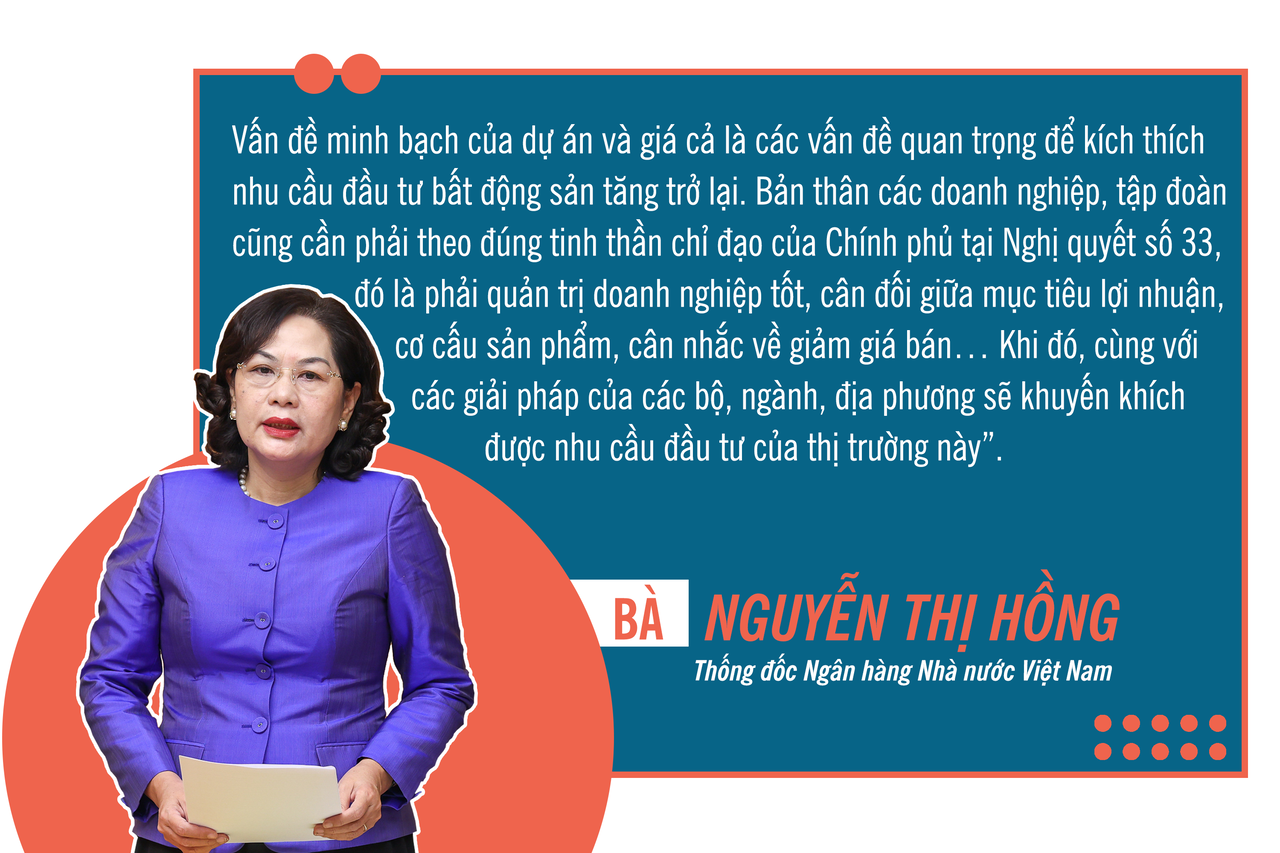 Tại hội nghị trực tuyến triển khai Công điện 993/CĐ-Ttg của Thủ tướng Chính phủ diễn ra mới đây, ông Đào Minh Tú, Phó thống đốc Ngân hàng Nhà nước, cho rằng thời gian qua, giá nhà giảm rất chậm, thậm chí còn tăng, trong khi lãi suất cho vay đã giảm. Doanh nghiệp bất động sản cần thống nhất trong “cuộc chơi” về giá nhà. Hiện nay, giá nhà rất cao, doanh nghiệp phải cân nhắc mới có thể giải quyết được vấn đề sức mua của thị trường.