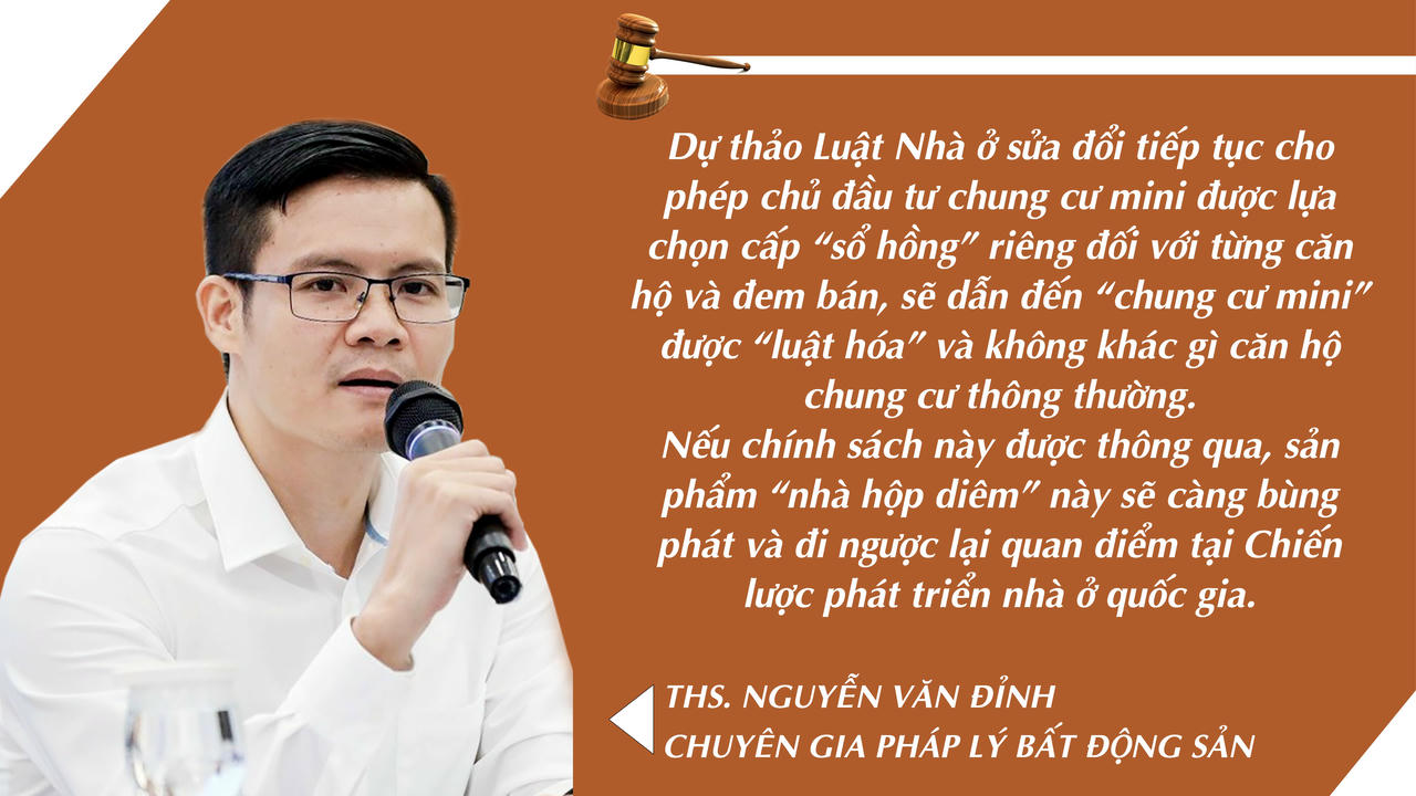 Dự thảo Luật Nhà ở sửa đổi tiếp tục cho phép chủ đầu tư chung cư mini được lựa chọn cấp “sổ hồng” riêng đối với từng căn hộ và đem bán, sẽ dẫn đến “chung cư mini” được “luật hóa” và không khác gì căn hộ chung cư thông thường.