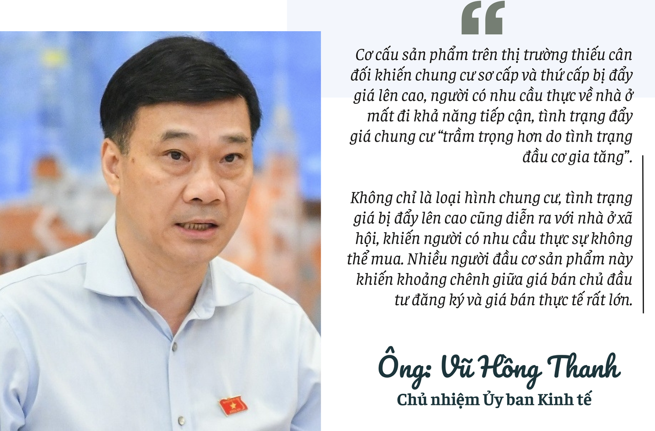 Cùng đó, cơ cấu sản phẩm trên thị trường thiếu cân đối khiến chung cư sơ cấp và thứ cấp bị đẩy giá lên cao, người có nhu cầu thực về nhà ở mất đi khả năng tiếp cận. Trong bối cảnh lãi suất tiền gửi thấp, ông Thanh cho biết tình trạng đẩy giá chung cư "trầm trọng hơn do tình trạng đầu cơ gia tăng".