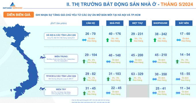 Tại TP.HCM, có 3/5 phân khúc bất động sản ghi nhận tăng giá; trong đó, giá chung cư rao bán tăng từ 1 - 2% lên mức 29 - 82 triệu đồng/m2; phân khúc nhà phố từ 31 - 103 triệu đồng/m2, tăng 3 - 5% theo tháng; phân khúc biệt thự cũng tăng lên từ 63 - 329 triệu đồng/m2…