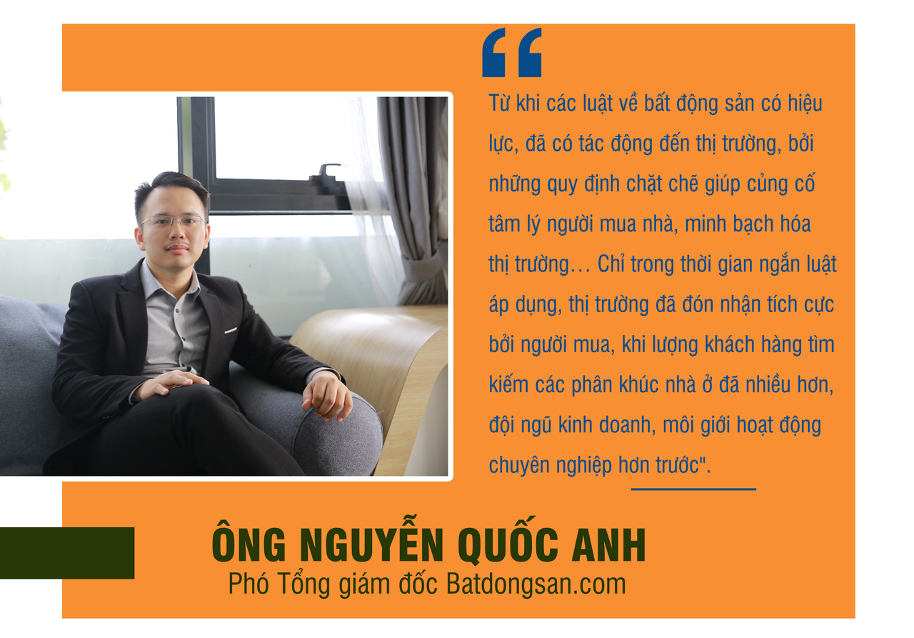 Ông Nguyễn Quốc Anh, Phó Tổng giám đốc Batdongsan.com đánh giá: "Trước khi Luật Đất đai, Luật Kinh doanh bất động sản, Luật Nhà ở chưa có hiệu lực chính thức, nhà đầu tư, khách hàng vẫn mang tâm lý chờ đợi.