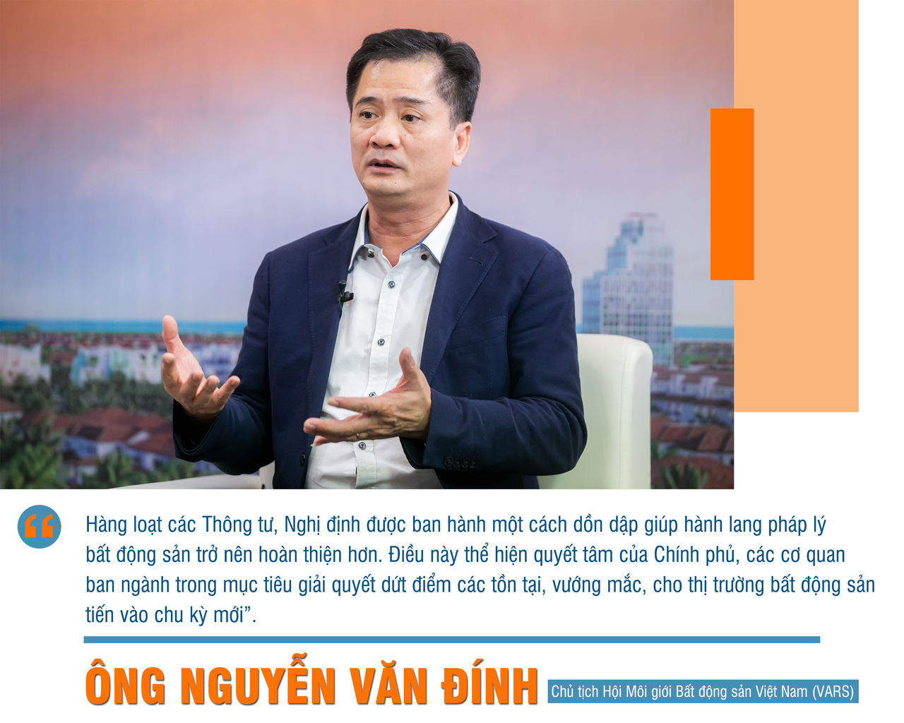 Cả hệ thống, từ cơ quan ban ngành, tổ chức xã hội chuyên nghiệp, doanh nghiệp, môi giới bất động sản đều "chạy đua" với các chương trình phổ biến, đào tạo kiến thức pháp luật mới. Đặc biệt, có sự tham gia của một số ngân hàng trong việc nỗ lực bám sát sự chuyển động của thị trường trong cả thực tiễn và lý luận" - ông Đính cho hay.