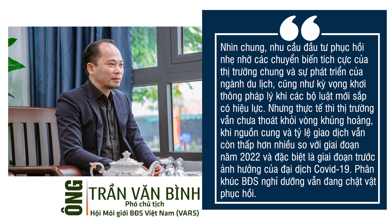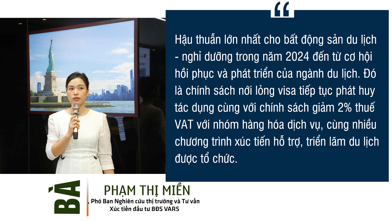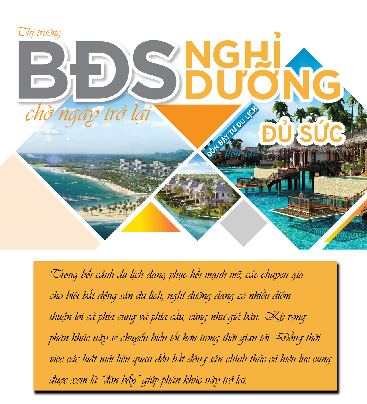 Trong bối cảnh du lịch đang phục hồi mạnh mẽ, các chuyên gia cho biết bất động sản du lịch, nghỉ dưỡng đang có nhiều điểm thuận lợi cả phía cung và phía cầu, cũng như giá bán. Kỳ vọng phân khúc này sẽ chuyển biến tốt hơn trong thời gian tới. Đồng thời việc các luật mới liên quan đến bất động sản chính thức có hiệu lực cũng được xem là “đòn bẩy” giúp phân khúc này trở lại.