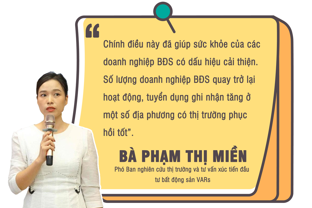 Theo bà Phạm Thị Miền, Phó Ban nghiên cứu thị trường và tư vấn xúc tiến đầu tư bất động sản VARs, thanh khoản trên thị trường bất động sản đang dần được cải thiện, đặc biệt so với giai đoạn khó khăn cuối năm trước và những tháng đầu năm nay. Đây là một tín hiệu đáng mừng đối với các chủ đầu tư.