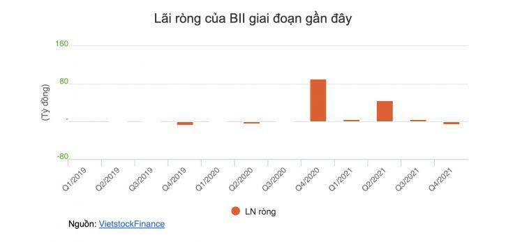 Trên báo cáo hợp nhất quý 1/2022, BII ghi nhận con số lỗ ròng 8.4 tỷ đồng, chuyển lãi thành lỗ so với kết quả cùng kỳ. Doanh thu trong kỳ vẫn ghi nhận mức tăng 40% lên hơn 151 tỷ đồng, song, với giá vốn chiếm tới hơn 99% nên lãi gộp của Công ty chỉ đạt 0.6 tỷ đồng, giảm 82% so với cùng kỳ.