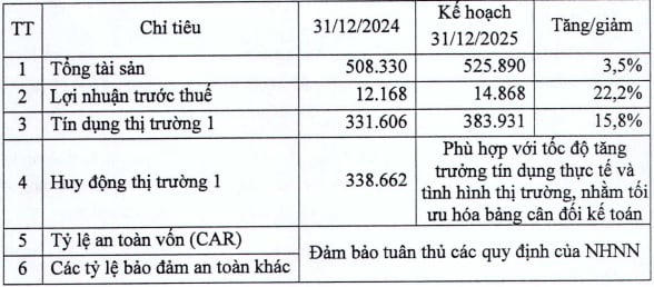 Năm nay, LPBank đặt kế hoạch lợi nhuận trước thuế tăng 22,2% so với năm 2024, đạt 14.868 tỷ đồng. Tổng tài sản tăng 3,5%, đạt 525.890 tỷ đồng; tín dụng thị trường 1 tăng 15,8%, đạt 383.931 tỷ đồng; huy động thị trường 1 phù hợp với tốc độ tăng trưởng tín dụng thực tế và tình hình thị trường, nhằm tối ưu hóa bảng cân đối kế toán.