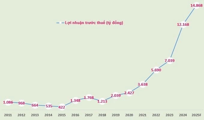 Lợi nhuận trước thuế đạt 12.168 tỷ đồng, tăng 73% và vượt 16% kế hoạch. Lợi nhuận sau thuế đạt 9.721 tỷ đồng, lãi cơ bản trên cổ phiếu 3.254 đồng.