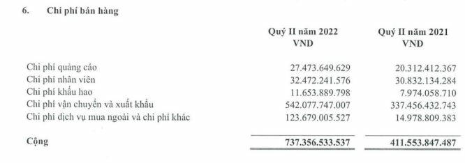 Đồng thời, các lệnh trừng phạt của Châu Âu và Mỹ áp đặt lên Nga gây gián đoạn chuỗi cung ứng toàn cầu cùng giá xăng dầu cao làm tăng chi phí vận chuyển. Chi phí vận chuyển và xuất khẩu của Hòa Phát quý 2/2022 tăng tới 61% so cùng kỳ, lên hơn 542 tỷ đồng khiến chi phí bán hàng tăng mạnh tới 79%, lên hơn 737 tỷ đồng. Nửa đầu năm, chi phí bán hàng ghi nhận hơn 1.314 tỷ đồng, tăng đến 59%.