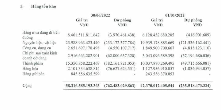 Tính đến 30/6/2022, hàng tồn kho của Hòa Phát cao nhất ngành, lên tới hơn 58.000 tỷ đồng, tăng 38% so với đầu năm. Tuy nhiên, giá bán thép giảm trong khi giá thành cao làm chi phí dự phòng giảm giá hàng tồn kho phải trích lập tính đến 30/6/2022 ở mức rất lớn là 762 tỷ đồng, trong khi hồi đầu năm chỉ hơn 235 tỷ đồng. Đây là một trong những nguyên nhân làm tăng giá vốn hàng bán và giảm biên lợi nhuận gộp của Hòa Phát từ 33% cùng kỳ xuống còn 18% trong quý 2/2022.