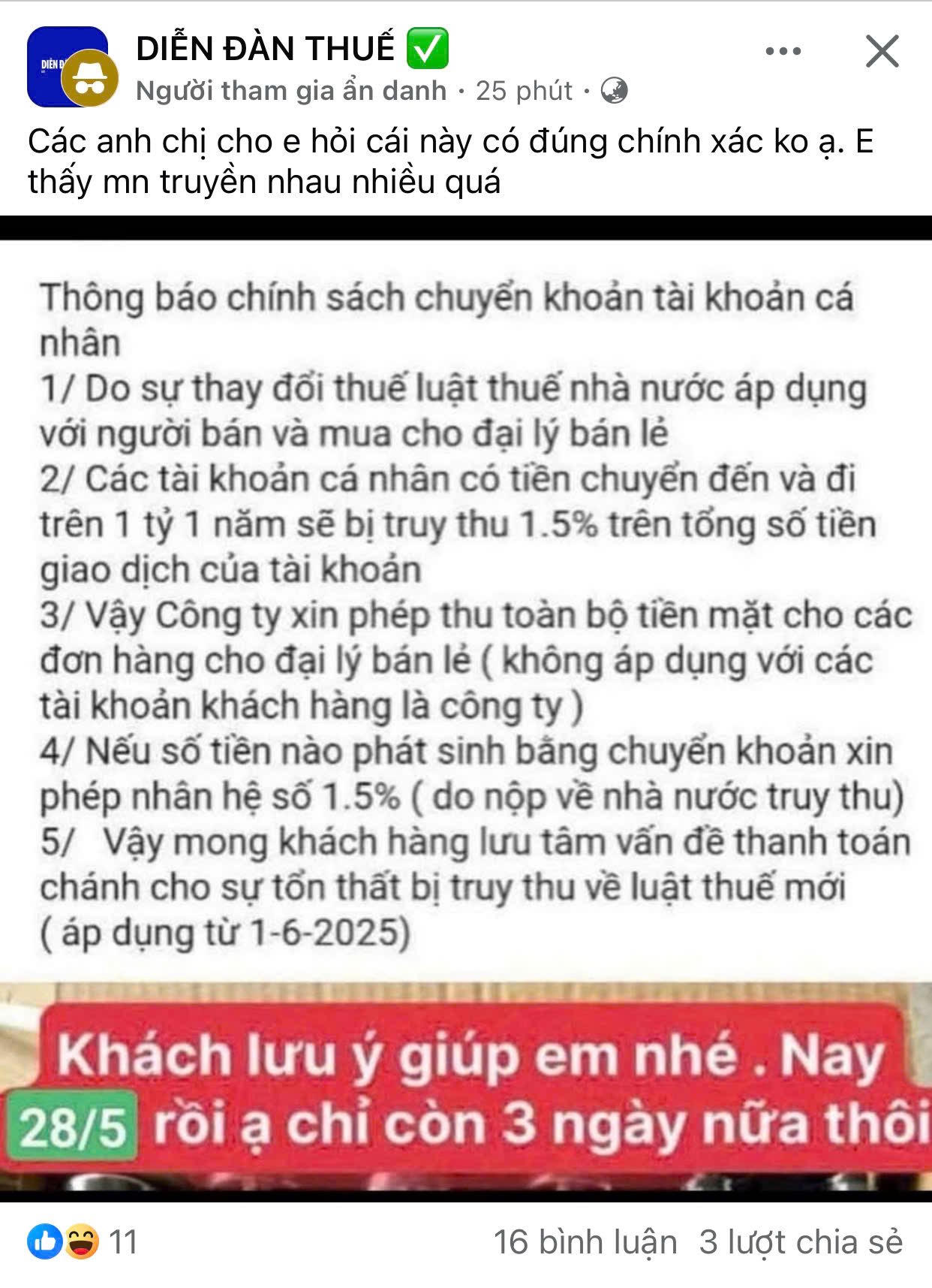 Có độc giả cho rằng, đây là thông tin sai lệch và đăng đàn trên các cộng đồng mạng để xác thực. Ngược lại, cũng có thành viên một cộng đồng về Thuế cho rằng nội dung trên là chính xác và nhắc các khách hàng là đại lý bán lẻ lưu ý việc này.