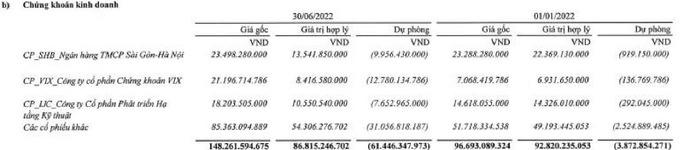 Không chốt lãi, thậm chí thấy thị trường giảm Thép Tiến Lên tiếp tục đổ thêm tiền bình quân giá, tổng giá gốc đầu tư vào cổ phiếu đến 30/6/2022 hơn 148 tỷ đồng, trong đó gia tăng tỷ trọng vào cổ phiếu VIX. Tuy vậy, đến cuối quý 2, cổ phiếu đầu tư tiếp tục giảm, Thép Tiến Lên đã phải trích lập dự phòng giảm giá chứng khoán đầu tư hơn 61 tỷ đồng, trong đó riêng khoản “tạm lỗ” của cổ phiếu VIX đến hơn 12 tỷ đồng.