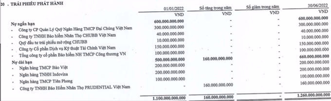 Các khoản vay nợ của Chứng khoán Sài Gòn Hà Nội tập trung chính vào vay trái phiếu với tổng 1.260 tỷ đồng tính đến 30/6/2022, trong đó vay ngắn hạn 600 tỷ đồng còn lại là vay dài hạn.