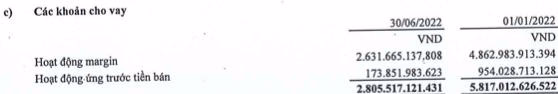 Dành tiền đầu tư chứng khoán, các khoản cho vay margin và hoạt động ứng trước tiền bán chứng khoán của công ty cũng giảm mạnh so với thời điểm đầu năm, từ số dư 4.862 tỷ đồng đầu năm xuống còn 2.631 tỷ đồng tính đến 30/6/2022 – tương ứng giảm hơn 2.200 tỷ đồng.