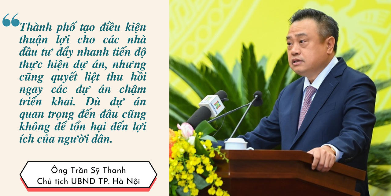 “Thành phố tạo điều kiện thuận lợi cho các nhà đầu tư đẩy nhanh tiến độ thực hiện dự án, nhưng cũng quyết liệt thu hồi ngay các dự án chậm triển khai. Dù dự án quan trọng đến đâu cũng không để tổn hại đến lợi ích của người dân”, ông Thanh nhấn mạnh.