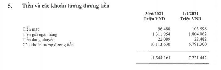 Thời điểm 30/6/2021, tổng tài sản của Masan lên đến 120.697 tỷ đồng, tăng 4,3% so với đầu năm trong đó tiền, tương đương tiền và tiền gửi đã tăng gần 50% so với đầu kỳ lên gần 12.000 tỷ đồng.