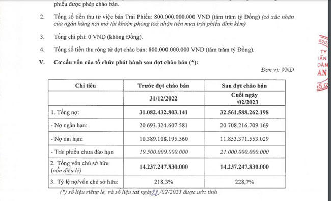 Tập đoàn dự kiến phát hành thêm 2.000 tỷ đồng trái phiếu ra công chúng để thanh toán một phần gốc đến hạn của lô trái phiếu trị giá 3.000 tỷ đồng sẽ đáo hạn vào ngày 12/5/2023. Lô trái phiếu này chưa chốt ngày phát hành.