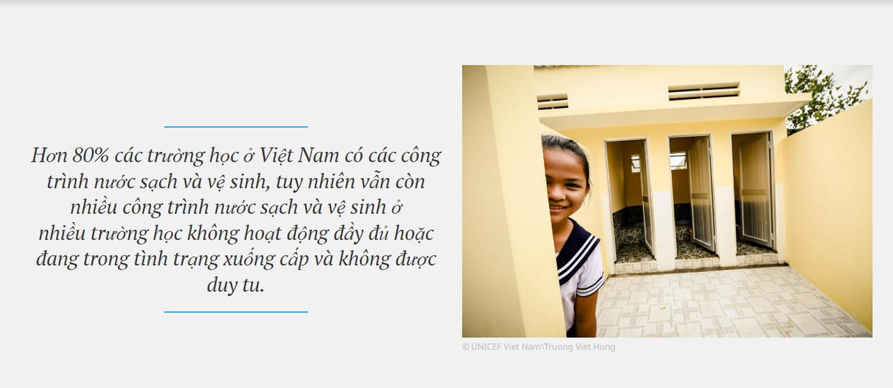 Thiếu nước sạch vẫn là một thách thức lớn ảnh hưởng đến trẻ em ở khắp nơi trên thế giới – không chỉ riêng Việt Nam. Nước sạch, vệ sinh môi trường và vệ sinh cá nhân (WASH) là những yếu tố cốt lõi của phát triển nguồn nhân lực và thúc đẩy tăng trưởng của Việt Nam. Theo UNICEF Việt Nam, hơn 80% trường học trên cả nước đã có công trình nước sạch và vệ sinh, tuy nhiên chất lượng nhiều công trình chưa đảm bảo hoặc đã xuống cấp. Vì vậy, UNICEF luôn hợp tác với chính phủ và khu vực tư nhân, nỗ lực đạt mục tiêu phát triển bền vững về nước sạch và vệ sinh – mà tiêu biểu gần đây nhất là dự án hợp tác cùng Masterise Group.