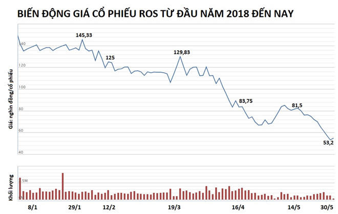 ROS đã mất hơn 60% giá trị từ đầu năm 2018 đến nay. Nguồn: VNDirect.