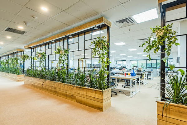 Thêm nữa, với những công việc đòi hỏi yếu tố sáng tạo khi làm việc, không gian làm việc cần phải được trang trí với một vài chậu cây xanh để cải thiện không khí và đánh bật ý tưởng khi làm việc.