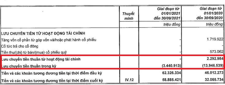 Kết quả, tổng lưu chuyển tiền thuần trong kỳ bị âm gần 3.441 tỷ đồng (cùng kỳ 2020 âm hơn 13.946 tỷ đồng).