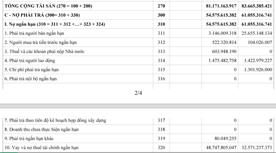 Nợ phải trả của Midomax Việt Nam cũng có nhiều biến động. Thời điểm cuối năm 2023 nợ phải trả của công ty là hơn 54,5 tỷ đồng thì con số này hồi đầu năm là hơn 61 tỷ đồng. Tập trung chủ yếu ở nợ ngắn hạn.