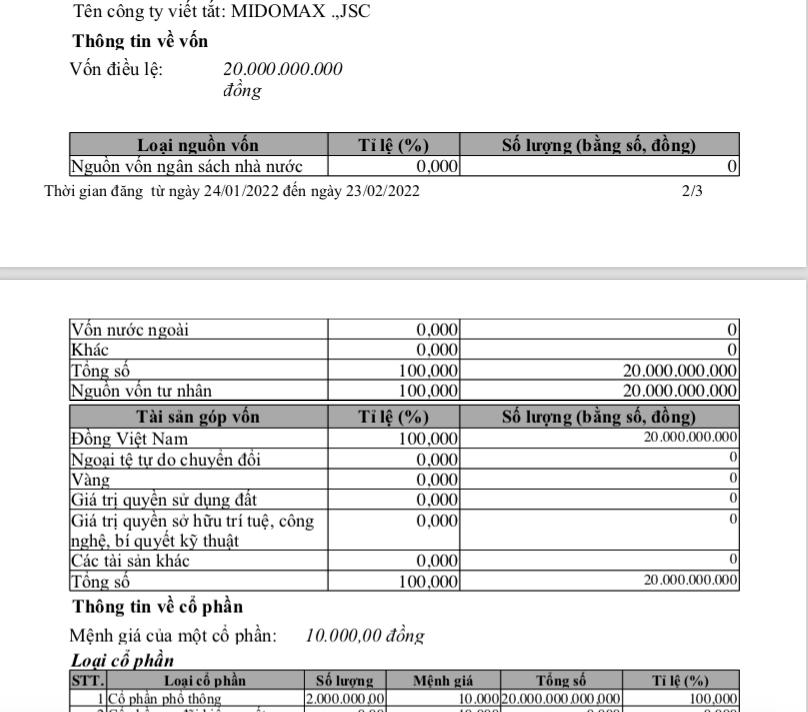 Midomax Việt Nam được thành lập từ ngày 12/5/2015, địa chỉ trụ sở chính tại Lô E69, đường Phạm Hùng, phường Mễ Trì, quận Nam Từ Liêm, Hà Nội. Người quản lý doanh nghiệp là Lưu Tất Thắng, sinh năm 1984, giữ chức vụ Giám đốc. Tổng số lao động theo đăng ký thuế là 6 người.