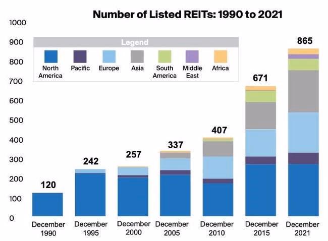 Báo cáo mới đây của Cushman & Wakefield đã chỉ ra, tính đến cuối năm 2021, toàn châu Á có 198 quỹ REIT, với tổng giá trị thị trường là 304,1 tỷ USD. Trong đó, Nhật Bản là quốc gia sở hữu các REIT quy mô lớn nhất châu lục và thứ 2 toàn cầu với tổng giá trị thị trường là 147,8 tỷ USD, tăng 18% so với năm 2020, xếp sau là Singapore và Hong Kong (Trung Quốc).