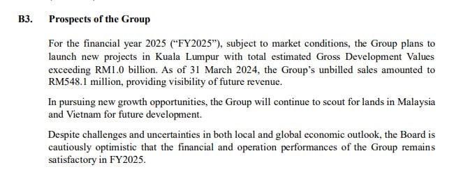 Về kế hoạch sắp tới, người sáng lập và chủ tịch HĐQT Datuk Seri Ng Thiên Phing cũng tiết lộ trên tờ The Sun: “Chúng tôi đang có kế hoạch triển khai các dự án phát triển mới ở Kuala Lumpur. Ngoài ra, chúng tôi sẽ tiếp tục tìm kiếm các vùng đất chiến lược ở Việt Nam và Malaysia để duy trì sự phát triển trong tương lai”.