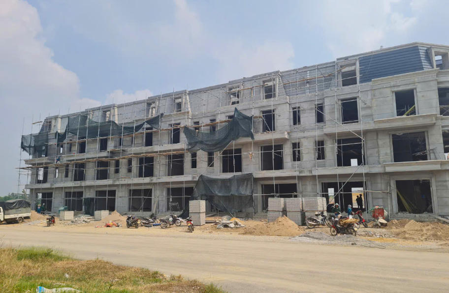 Ghi nhận thực tế tại dự án gần đây cho thấy, dự án có hai phân khu, trong đó có một phân khu đã hoàn thiện các hạng mục hạ tầng công trình và một phân khu hiện vẫn đang triển khai thi công, ngổn ngang vật liệu xây dựng.