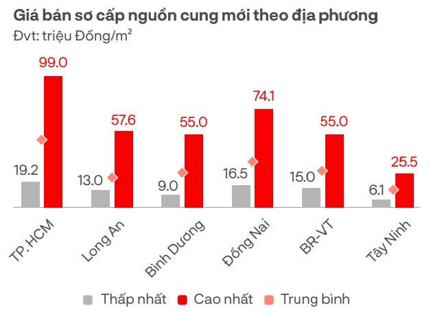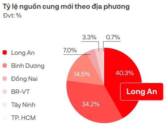 Theo Báo cáo thị trường bất động sản nhà ở TPHCM và vùng phụ cận năm 2022, nguồn cung đất nền mới tăng 9% so với năm 2021, trong đó 2 tỉnh Long An và Bình Dương chiếm khoảng 74.5% tổng cung toàn thị trường.