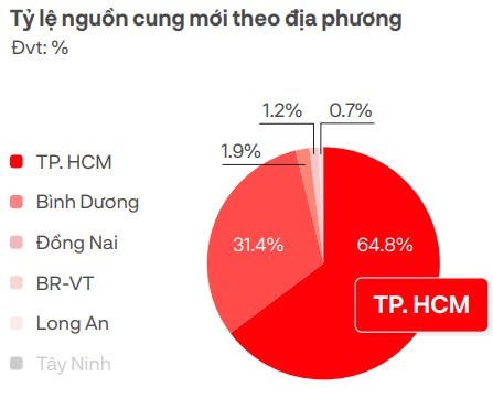 Tình trạng lệch pha cung giữa các loại hình bất động sản là đặc trưng phổ biến trong năm 2022. Theo báo cáo mới đây nhất cho thấy, nguồn cung mới TPHCM và các tỉnh giáp ranh ghi nhận tăng 22% so với năm 2021 nhưng vẫn ở mức thấp so với giai đoạn 2019 trở về trước. TPHCM và Bình Dương dẫn đầu nguồn cung mới toàn thị trường, lần lượt chiếm 64.8% và 31.4% tổng lượng sản phẩm mở bán trong năm.
