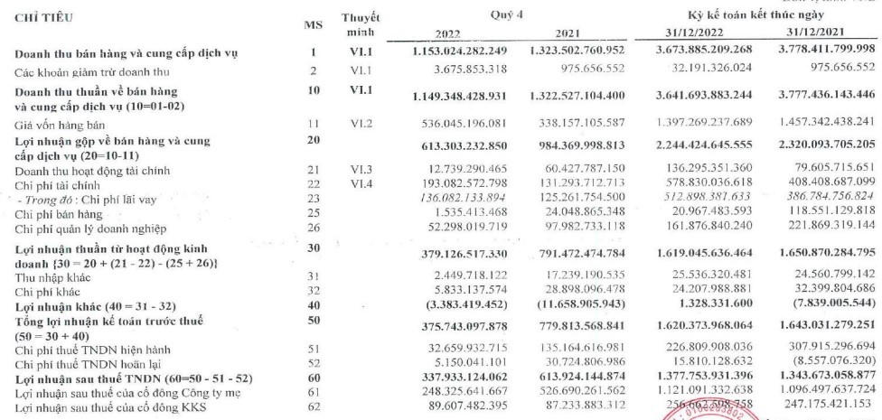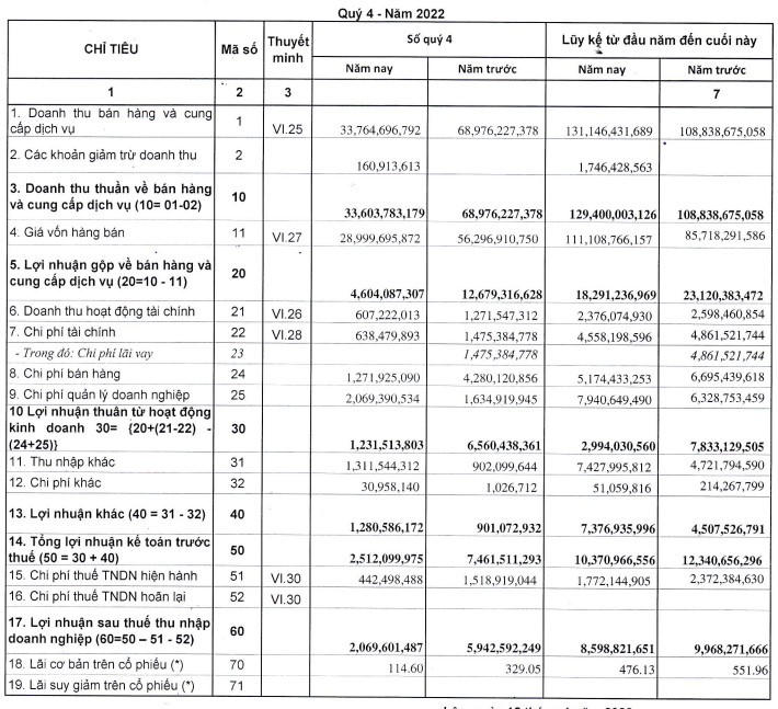 Dù đã tiết giảm chi phí bán hàng (chỉ 1,5 tỷ đồng, giảm 94%) và chi phí quản lý (52 tỷ đồng, giảm 47%), song lợi nhuận trước thuế vẫn giảm 52%, đạt 375 tỷ đồng; lợi nhuận sau thuế giảm 45%, đạt 338 tỷ đồng.