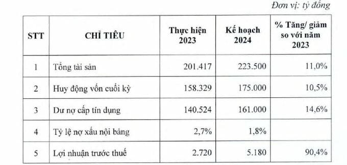 Một ngân hàng đặt mục tiêu lợi nhuận 2024 tăng trưởng 90%, dự kiến chia cổ tức tỷ lệ 10%