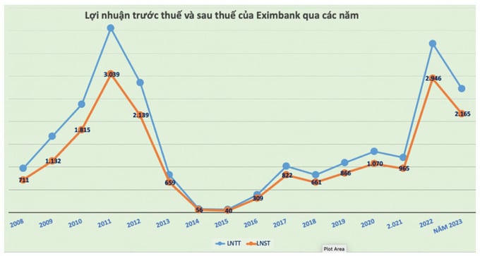 Giữa lùm xùm nợ thẻ tín dụng, Eximbank công bố báo cáo tài chính kiểm toán năm 2023 với những tiêu chí đáng chú ý. Cụ thể, sau năm 2022 lãi đột biến 2.946 tỷ đồng, thì năm 2023 lợi nhuận giảm sút 16,5% còn 2.165 tỷ đồng.