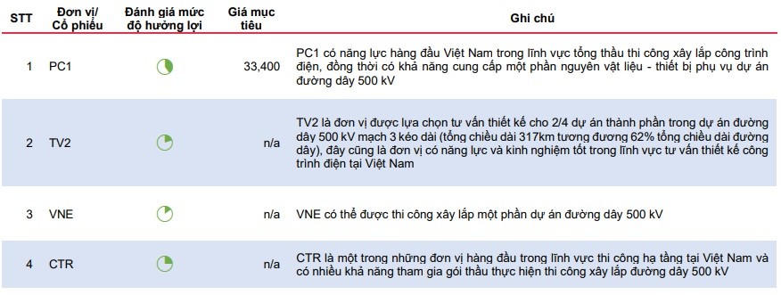 Việc triển khai dự án đường dây 500 kV mạch 3 kéo dài sẽ có tác động tích cực đến các đơn vị có năng lực và có thể đảm nhận các công việc chính của dự án, bao gồm: PC1 (cung cấp nguyên vật liệu, thi công công trình), TV2 (tư vấn thiết kế và giám sát), CTR và VNE (thi công công trình điện).