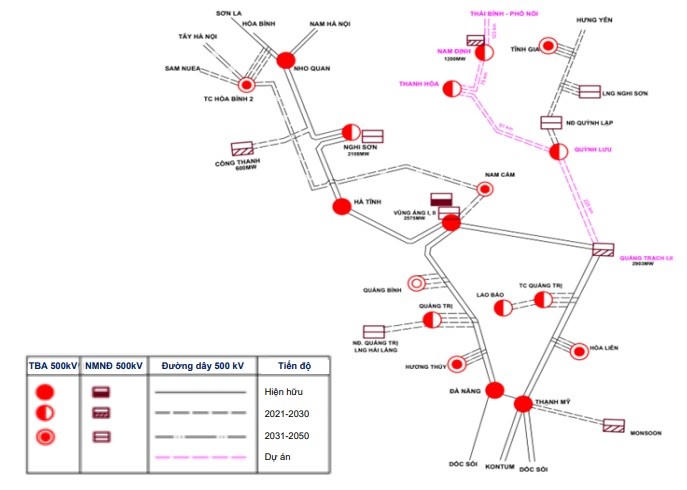 Sự trái ngược trong chênh lệch nguồn điện và tải điện tại miền Bắc và miền Trung dẫn đến nhu cầu truyền tải điện ra miền Bắc tăng cao. Hiện tại, đã có hai đường dây 500 kV là mạch 1 và 2 đã hoàn thành và thực hiện truyền tải điện từ Nam ra Bắc. Dự án đường dây 500 kV mạch 3 đoạn Vũng Áng - Quảng Trạch - Dốc Sỏi - Pleiku 2 đã hoàn thiện vào tháng 8/2022 và nâng công suất truyền tải điện giữa miền Nam và miền Trung, tuy nhiên dự án này vẫn chưa thực hiện đoạn truyền tải ra miền Bắc.