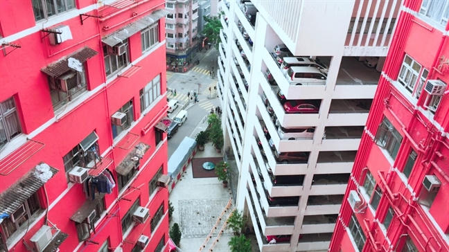 Ngược hướng với các tòa nhà hiện đại, chọc trời ở đảo Hong Kong, từ khu Tsim Sha Tsui, là các tòa nhà chung cư kiểu cũ dày đặc tại bán đảo Kowloon, cách Central vài chục phút đi MRT. Mỗi chung cư khoác lên vẻ đẹp không trộn lẫn.