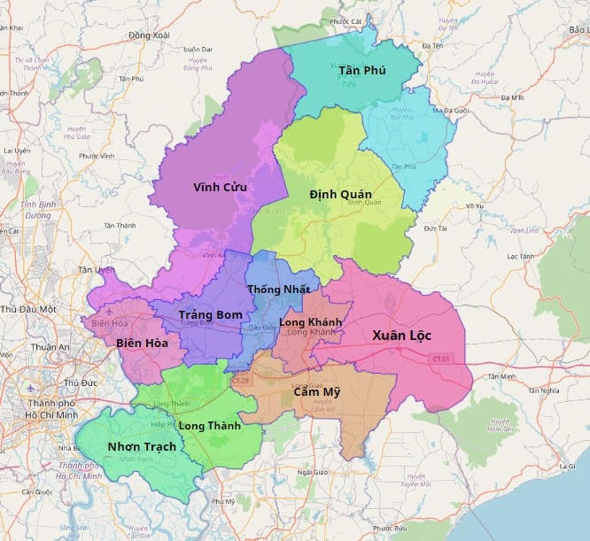Đồng Nai là tỉnh thuộc vùng Đông Nam Bộ trên cơ sở hợp nhất 2 tỉnh cũ là Biên Hòa và Long Khánh. Đây là 1 trong số 26 tỉnh thành trong cả nước không có thị xã.