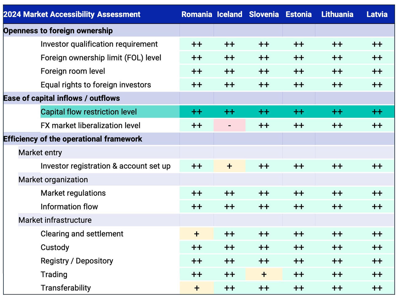 Dựa trên báo cáo đánh giá tiếp cận thị trường toàn cầu năm 2024 của MSCI, các thị trường tiềm năng cho nhóm này bao gồm: Estonia, Iceland, Latvia, Lithuania, Romania và Slovenia.
