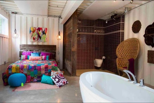 Để tiết kiệm diện tích, nhà tắm và phòng ngủ được gộp làm một