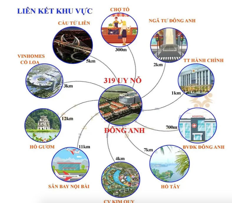 Từ dự án, cư dân có thể dễ dàng kết nối thuận tiện đến các tuyến đường giao thông chính của khu vực: cách cầu Tứ Liên 5km; cách trung tâm thị trấn Đông Anh 200m; cách trung tâm hành chính Đông Anh 1km; cách Bệnh viện đa khoa Đông Anh 700m; cách Vinhomes Cổ Loa 3km; cách sân bay Nội Bài 11km; cách công viên Kim Quy 4km; cách Hồ Tây 7km, cách Trung tâm triển lãm Quốc gia 4km.