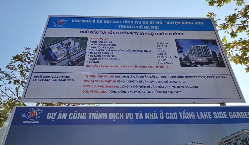 Dự án nhà ở xã hội tại xã Uy Nỗ (huyện Đông Anh, Hà Nội) do Tổng Công ty 319 (doanh nghiệp thuộc Bộ Quốc phòng) làm chủ đầu tư, tổng mức đầu tư hơn 630 tỷ đồng.
