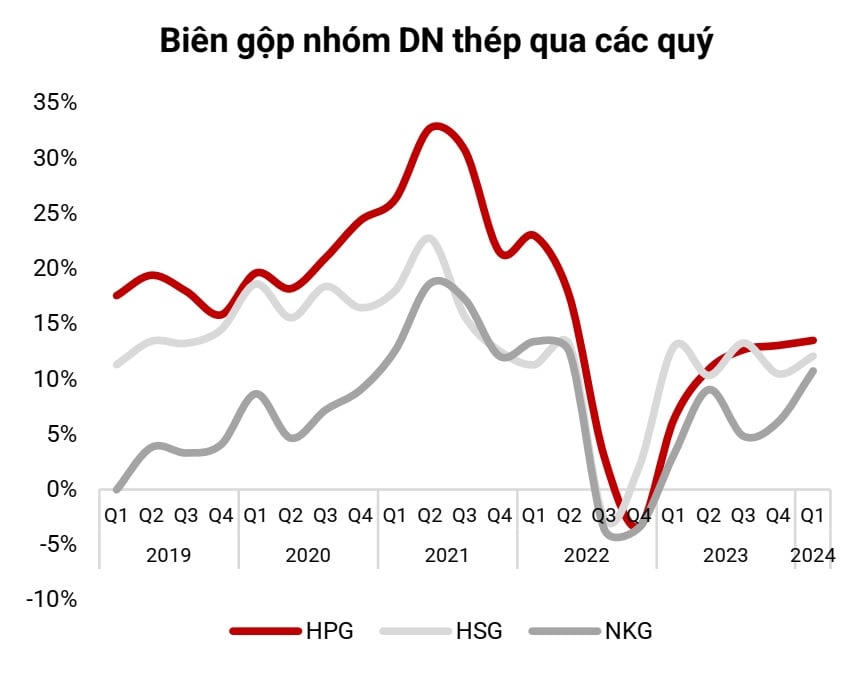 Bên cạnh đó, những thông tin chống bán phá giá cũng tiềm ẩn khả năng tạo sức bật cho ngành. Từ cuối năm 2023, các doanh nghiệp tôn mạ đã đề xuất gia hạn thuế chống bán phá giá đối với sản phẩm thép mạ của Trung Quốc và Hàn Quốc (đã có hiệu lực 5 năm từ 2019 và hết hạn vào tháng 9/2024). Đầu năm 2024, đến lượt HPG và Formosa đề xuất phòng vệ thương mại đối với thép cuộn cán nóng HRC từ Ấn Độ và Trung Quốc.