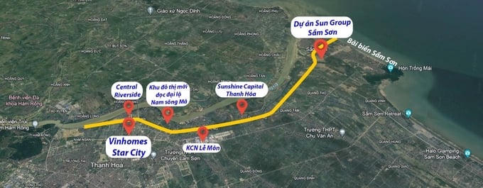 Nằm ở vị trí huyết mạch, dọc Đại lộ Nam sông Mã còn là nơi dừng chân của hàng loạt dự án lớn như: Dự án Vinhomes Star City, Sun Group Sầm Sơn hay Vinhome Star City...