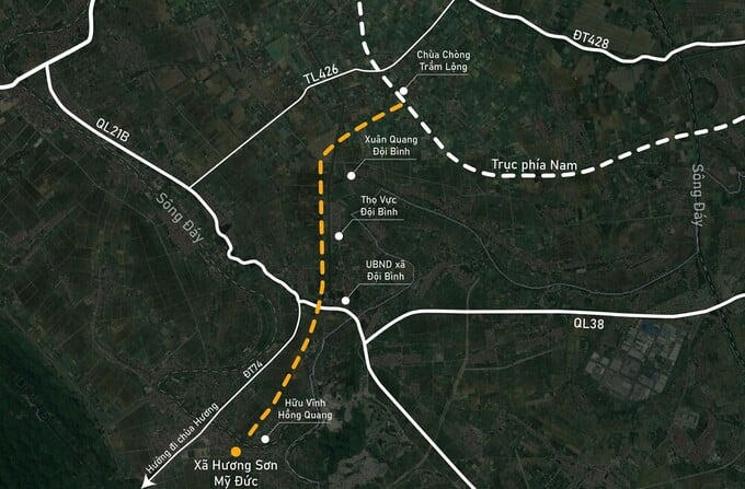 Đoạn tuyến dài 13km sẽ bắt đầu tại nút giao với tuyến đường trục phía Nam, đi một mạch đến sông Châu Giang đến Quốc lộ 21B và đến sông Đáy. Sau khi đi qua sông Đáy, tuyến đường này sẽ chạy thẳng đến đoạn gần hồ câu Phạm Tú, sau đó đến gần đền Mẫu Thượng và giao với đường Hương Sơn - Tam Chúc.