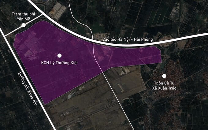 KCN Lý Thường Kiệt sẽ được quy hoạch xây dựng trên diện tích đất rộng 300ha, nằm ngay sát sườn cao tốc Hà Nội - Hải Phòng, cạnh trạm thu phí Yên Mỹ (tỉnh Hưng Yên).
