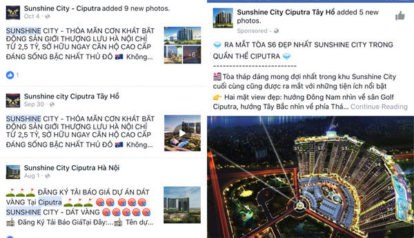 Khảo sát hầu hết các trang rao vặt quảng cáo bất động sản cho thấy, các nhân viên môi giới đều ghi tiêu đề dự án là Sunshine City Ciputra với nhiều tiện ích như hạ tầng giao thông, sân golf, Ciputra bar, khuôn viên xanh,...