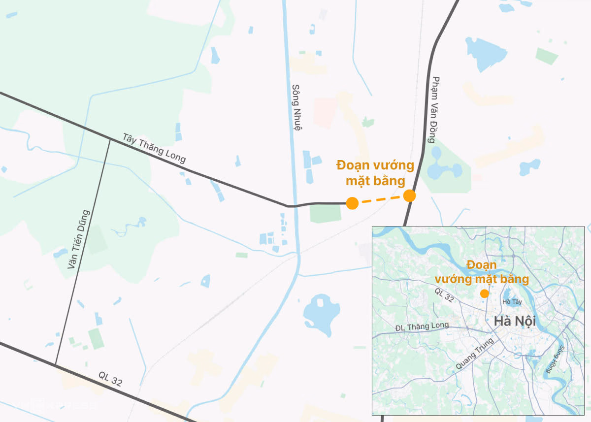 Tuy nhiên, đoạn 2 từ Phạm Văn Đồng đến Văn Tiến Dũng dài khoảng 3,2 km dù dự kiến hoàn thành năm 2021 nhưng đến nay vẫn thi công cầm chừng. Nguyên nhân chính là vướng giải phóng mặt bằng tại phường Đông Ngạc. Khu vực này còn nhiều nhà dân và đã quá hạn bàn giao so với mốc 31/3/2026.