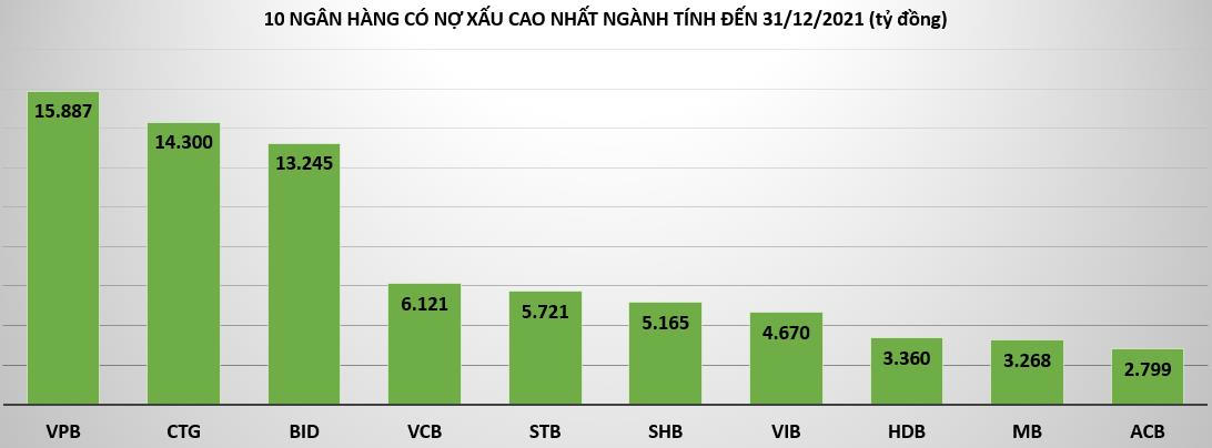 Kết thúc năm 2021, VPBank bị đẩy lên vị trí ngân hàng có nhiều nợ xấu nhất năm (soán ngôi của BIDV) với khối nợ xấu hợp nhất gần 15.887 tỷ đồng, tăng 60% so với năm trước. Tuy nhiên, trong khối nợ gần 16 nghìn tỷ đồng này thì nợ xấu của công ty con (Fe Credit) chiếm khoảng 65% do tác động của đại dịch Covid-19. Trong khi nợ xấu ngân hàng mẹ chỉ tăng nhẹ 1%.